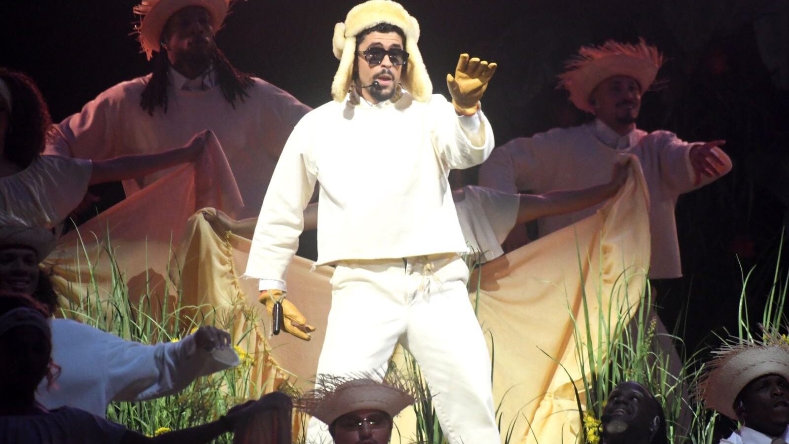 Previo a su aparición, se presentó un video que recorrió su trayectoria musical, seguido por la interpretación del tema “Café con Ron” a cargo del grupo puertorriqueño Los Pleneros de la Cresta, quienes colaboran con el artista en la canción.