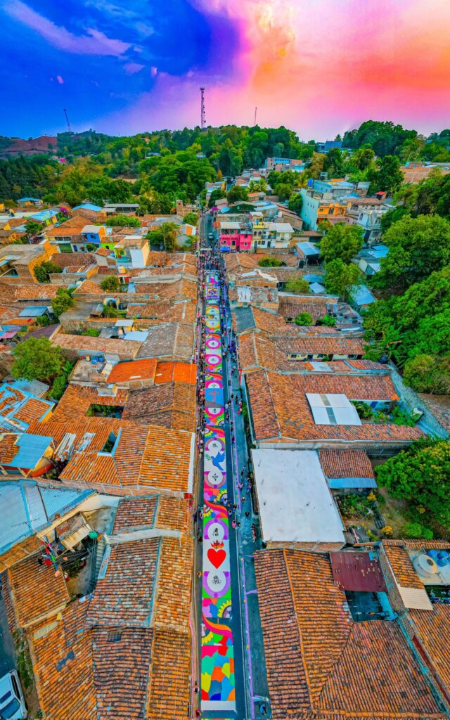 Sonsonate: Famosa por sus alfombras de gran escala que cubren cuadras completas en el recorrido de la procesión nocturna.