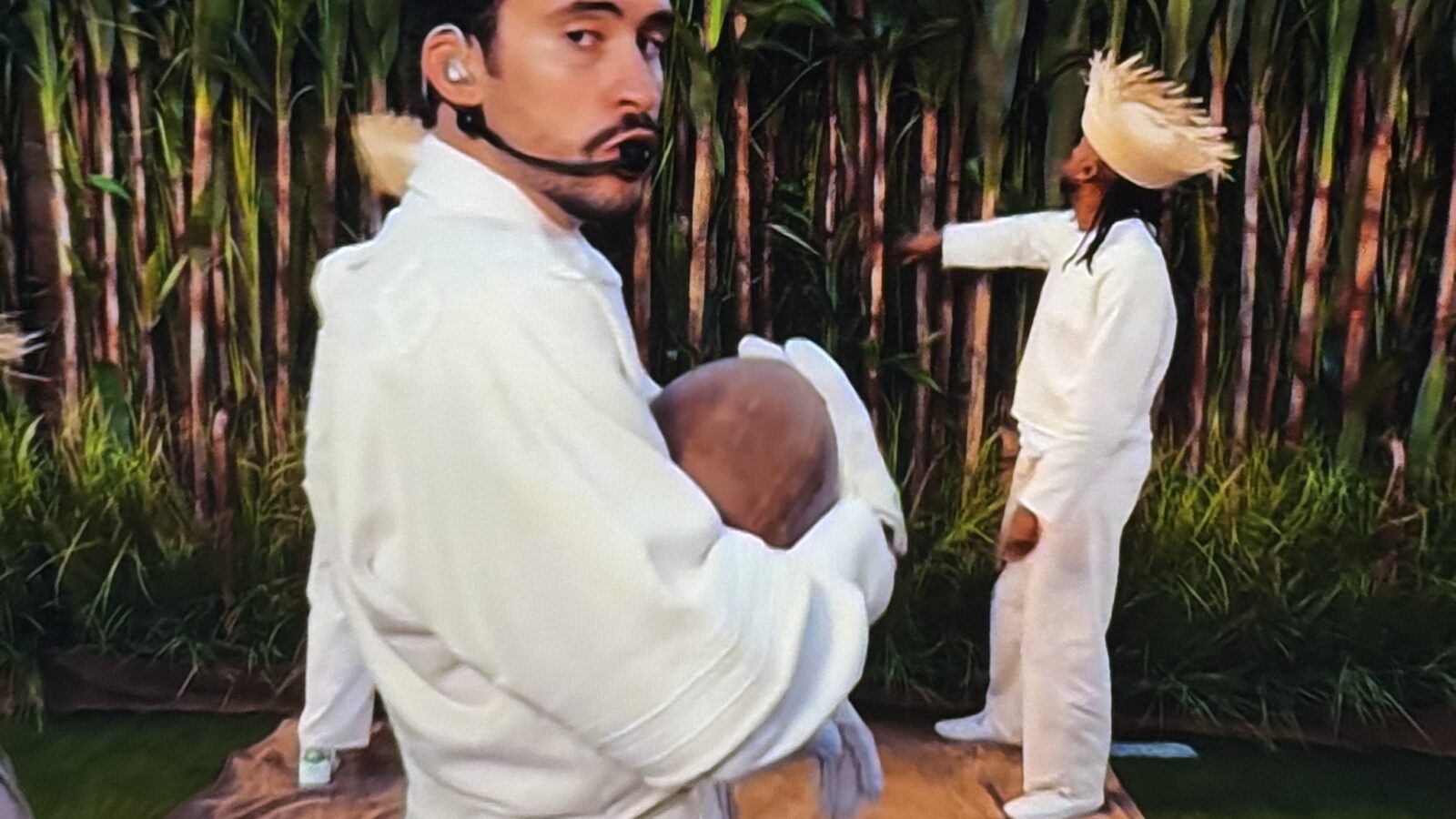 A una actuación repleta de símbolos a su Puerto Rico natal, se sumaron varios artistas como Cardi B, la colombiana Karol G, el chileno Pedro Pascal, Jessica Alba, Young Miko, David Grutman, y la actuación sorpresa de Lady Gaga y Ricky Martin, quienes fueron sus únicos acompañantes vocales en los minutos de espectáculo.