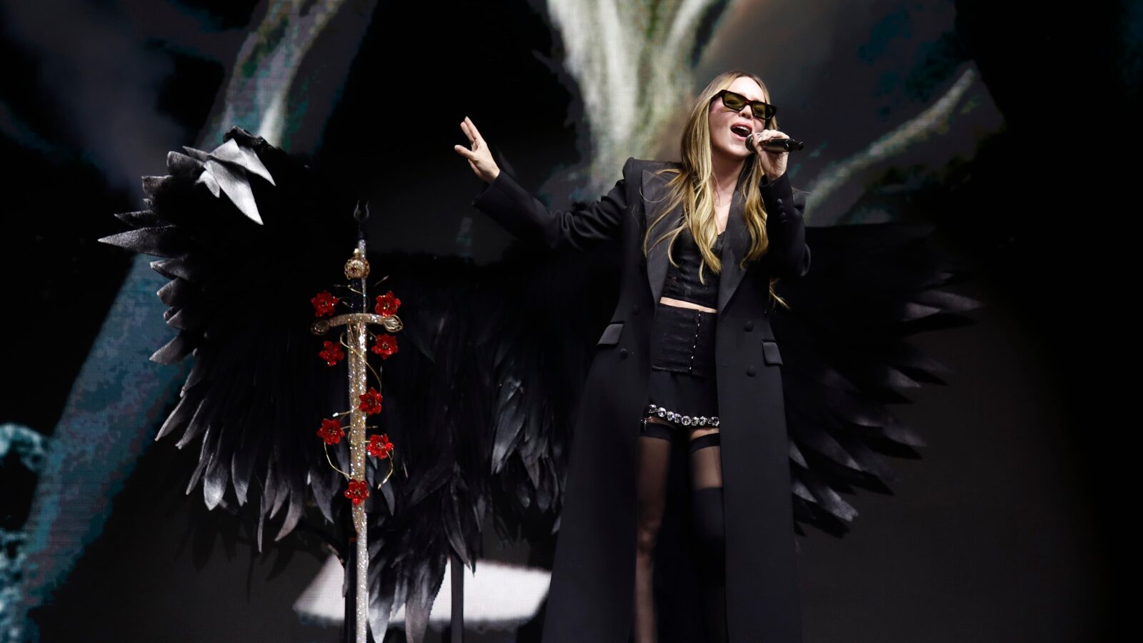 Luego de un momento íntimo con “300 Noches” y “La Cuadrada”, el show tomó un giro más oscuro y sensual con la “Transición 2: En la Oscuridad (Pole Dance)”, donde la artista mostró una faceta más performática.
