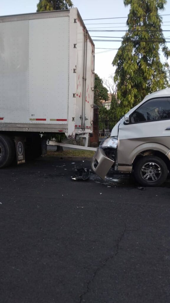 Un aparatoso accidente de tránsito se registró sobre la Calle Antigua Ferrocarril, en las cercanías de la Hacienda Los Miranda, jurisdicción de Antiguo Cuscatlán, La Libertad Este. En el siniestro se vio involucrado un microbús que transportaba niños estudiantes, el cual impactó contra la parte trasera de un camión de carga. Las autoridades no descartan que la distracción al volante o el exceso de velocidad hayan sido los factores determinantes del percance.