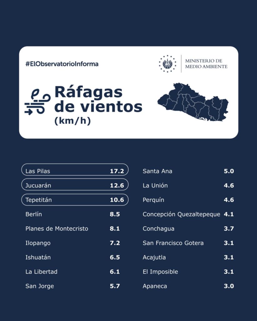 En cuanto al viento, se reportan velocidades que oscilan entre los 8 y 18 km/h, con ráfagas ocasionales que podrían alcanzar los 30 km/h. Las temperaturas mostrarán el calor característico de la región, con máximas de hasta 35 °C en la zona oriental y valles interiores que rondarán los 31 °C. Por su parte, las zonas de montaña ofrecerán un ambiente más fresco, con temperaturas entre los 20 °C y 24 °C. Se recomienda a la población mantenerse informada sobre las actualizaciones del pronóstico, especialmente si transitan por zonas propensas a ráfagas de viento.