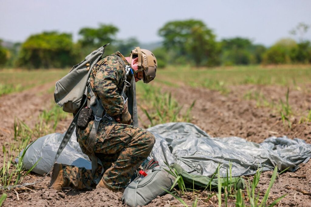 La misión, realizada bajo estrictos protocolos de seguridad, incluyó maniobras de inserción rápida en zonas simuladas de conflicto, donde los paracaidistas debieron demostrar su habilidad para desplegarse con precisión y responder a escenarios complejos. Tras completar los saltos con éxito, los infantes de marina salvadoreños fueron reconocidos con la Insignia de Paracaidista del Cuerpo de Marines de EE. UU., un distintivo que simboliza su excelencia operativa y su capacidad para integrarse a misiones internacionales.