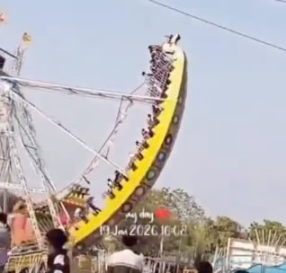 🇮🇳 | Un columpio gigante se derrumbó en una feria en Jhabua, Madhya Pradesh, India, hiriendo a 14 niños.