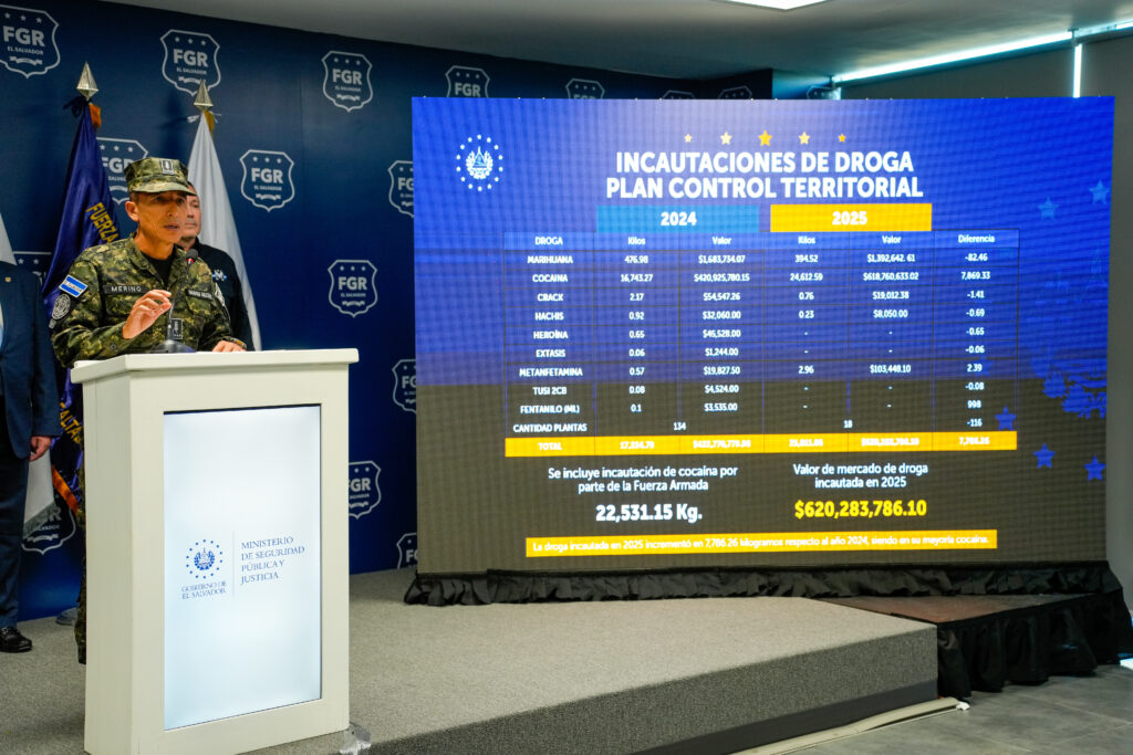 En materia de narcotráfico, 2025 fue calificado como el año más eficiente. Se incautaron 25,011.05 kilogramos de droga, superando en más de 7,700 kilos la cifra de 2024, con un valor estimado en 620 millones de dólares.