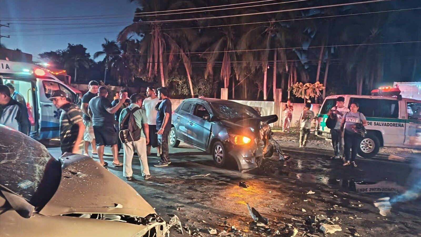 Al menos seis personas resultaron lesionadas tras un fuerte accidente de tránsito ocurrido en la carretera que conduce al Puerto de La Libertad, en el sector de San Diego. El percance se produjo cuando un vehículo tipo sedán colisionó de forma frontal con otro automóvil, generando una escena de gran impacto.